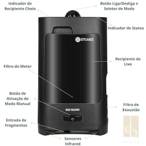 Aspirador a vácuo automático com sensores infravermelhos para detecção de sujeira. Possui motor de alta performance, funcionamento silencioso, design moderno e compacto, e reservatório removível. Ideal para salões, barbearias, clínicas, pet shops e clínicas veterinárias.Tipo de coletor