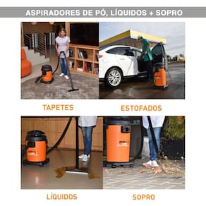 Aspirador Jacto AJ 3230 1350w 30 Litros 220v Água e Pó ASPIRADORES DE PÓ, LÍQUIDOS + SOPRO USO PROFISSIONALPrecisando de equipamentos robustos e versáteis? Os aspiradores AJ3230 e AJ2220 são as melhores opções para suas necessidades. Sendo efetivos para pó, líquido e também na função sopro, são ideais para a limpeza de veículos, hotéis, comércios e muito mais. Características:Fabricados no BrasilTurbina cônica, maior poder de sucção, durabilidade e economia;Longo alcance: 8,7 m (cabo elétrico + mangueira + tubos plásticos) - evita a troca de tomadas;Filtro de tecido reutilizável para aspirar pó;5 bocais: praticidade para limpar várias superfícies;Válvula de segurança tipo boia para evitar derramamento de líquidos; Especificações Técnicas: Tensão: 220vPotência Nominal: 1200W Potência Máxima: 1350W Motor: 1 Frequência: 50/60Hz Depressão: 200mbar Arrefecimento: By-Pass Volume de Ar Aspirado: 4200L/Min Capacidade Total do Reservatório: 22 Litros Capacidade Efetiva do Reservatório: 20 Litros Nível de Ruído: 91dB (A)Comprimento do Cabo - 5m MedidasCLA - 370 x 370 x 650 mmPeso Embalado: 7,9 KgPeso Líquido: 7,4 kg Acessórios Inclusos:Mangueira 2,5 mTubo ProlongadorEscova de PavimentosBocal para LíquidosPonteira ConcetradaEscova RedondaBocal 14 cm Fabricado de acordo com as exigências da Portaria n° 371, do Instituto Nacional de Metrologia, Qualidade e Tecnologia - INMETRO, que tornou compulsória a avaliação dos equipamentos para o recebimento do selo de identificação da conformidade de segurança Garantia:12 meses contra defeitos de fabricação. Referência de Fábrica:1248762