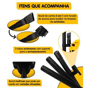 Aspirador De Pó E Líquidos 1000W 10 Litros Apv 1010 220V Vonder DESCRIÇÃO: Sabemos que a limpeza pode ser uma tarefa árdua, especialmente com o acúmulo de poeira e sujeira que afetam nossa qualidade de vida. As soluções tradicionais muitas vezes não são tão eficientes quanto precisamos. O Aspirador de Pó APV 1010 2020V da Vonder é a resposta para um ambiente mais limpo e saudável sem o incômodo de limpezas demoradas, seja para seu uso diário ou profissional, todos seus resíduos sumirão em um piscar de olhos BENEFÍCIOS: - Limpeza Poderosa: Com 1000W de potência, este aspirador lida facilmente com poeira e detritos em diversas superfícies; - Função de sucção e sopro; - Filtro HEPA: Alta eficiência na retenção de partículas e tripla filtragem; - Filtro esponja: Atua como uma barreira para partículas maiores e também ajuda a proteger o motor, evitando que resíduos ou líquidos atinjam componentes sensíveis; - Versatilidade: Aspira sólidos e líquidos e pode ser para limpeza doméstica em pisos, carpetes, móveis, veículos e muito mais, removendo todas as partículas finas do seu ambiente; - Manuseio Conveniente: Seu design articulado, rodas para mobilidade e tubo prolongador tornam a limpeza fácil e eficiente. CARACTERÍSTICAS: - Alto Desempenho e Eficiência de Aspiração: Equipado com um potente motor de 1000W e um vácuo de aproximadamente 15 kPa 150 mbar , o aspirador garante alto poder de sucção, sendo ideal para a remoção eficaz de sujeiras difíceis, incluindo sólidos, líquidos e partículas finas. - Grande Capacidade e Maior Alcance: Com um reservatório de 10 litros, permite maior autonomia sem a necessidade de esvaziamentos constantes. Além disso, o cabo elétrico de 4,20 metros proporciona mais liberdade de movimento, facilitando a limpeza de grandes áreas. - Baixo Peso e Facilidade de Manuseio: Com apenas 2,7 kg, o aspirador é leve e fácil de transportar, reduzindo o esforço durante o uso. Sua estrutura ergonômica facilita o manuseio, tornando a limpeza mais ágil e confortável, mesmo em tarefas prolongadas. ESPECIFICAÇÃO TÉCNICA: - Modelo: APV 1010 220V; - Linha: Profissional; - Tensão V : 220 V; - Frequência: 60 Hz; - Potência do motor: 1000 W; - Capacidade do reservatório: 10 litros; - Comprimento do cordão elétrico do aspirador de pó: 4,20 metros; - Tipo de aspiração do aspirador de pó: Sólidos, Líquidos; - Vácuo: Aproximadamente 15 kPa - 150 mbar; - Dimensões C x L x A : 245 mm x 260 mm x 430 mm; - Nível de potência sonora LwA : 94 dB A ; - Massa aproximada peso : 2,7kg. : 12 meses de do fabricante; A NÃO cobre erros de instalação ou MAU uso. CONTEÚDO DA EMBALAGEM: - 1 Aspirador de pó; - 1 Manguira flexível de sucção; - 1 Tubo extensor divido em 3 ; - 1 Bocal cantos/escova; - 1 Bocal Multiuso; - 1 Saco coletor de pó de pano Lavável ; - 4 Rodízios; - 1 Filtro espoja; - 1 Filtro HEPA. No Grupo CarroSomShop PEPE PARTS, entendemos sua paixão por ferramentas. É por isso que nos dedicamos a fornecer os melhores produtos para que você possa construir os melhores projetos. Explore nossa loja e descubra uma variedade de ferramentas que vão desde aspiradores de pó, Inversor de Solda, sopradores, etc até ferramentas de jardinagem. Descubra o que você precisa para elevar seu projeto a um novo patamar Junte-se a nós e experimente o compromisso do Grupo CarroSomShop PEPE PARTS com a qualidade e a satisfação do cliente. Estamos ansiosos para atender às suas necessidades com produtos especializados e atendimento excepcional. Garanta o seu aspirador de Pó APV 1010 220V 1000W agora, e obtenha um novo nível de habilidade com segurança e conforto.