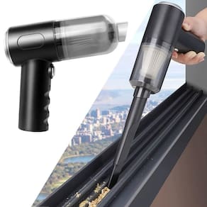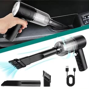 Aspirador de pó portátil recarregável sem fio, ideal para casa e carro. Possui sucção potente, design compacto e leve, e é versátil com acessórios multifuncionais.Tipo de coletor