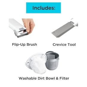 - ESCOVA GIRATÓRIA — Adiciona uma camada extra de versatilidade para tirar o pó e aspirar estofados.