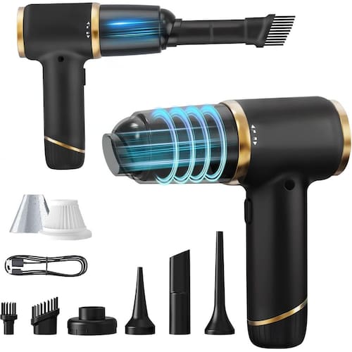 - ?Conjunto de aspirador de pó multifuncional 6 em 1? Este aspirador portátil sem fio (para uso doméstico e no carro) inclui 6 ferramentas especializadas: uma escova para remoção de pelos de animais de estimação, um bocal de fenda para espaços apertados e uma função de soprador de ar para limpeza leve da superfície. Seu design compacto alcança todos os cantos, tornando-o um limpador versátil para carros e residências.