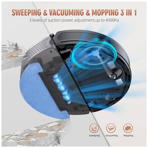 Com uma sucção máxima de 4.500 pa, o aspirador e esfregão robô pode facilmente puxar detritos e pelos de animais de estimação das profundezas do carpete, tornando simples limpar o lixo do dia a dia, como partículas de poeira e cabelos. Personalize seu aspirador robô por meio do aplicativo selecionando modos de limpeza, limpando determinados ambientes, configurando uma parede virtual, colocando uma zona nogo e muito mais.