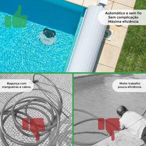 Com sua classificação ipx8, é completamente impermeável, garantindo desempenho confiável e seguro sob a água. A ausência de fios proporciona uma liberdade de movimento sem precedentes, permitindo que o robô navegue por todos os cantos da piscina sem restrições.