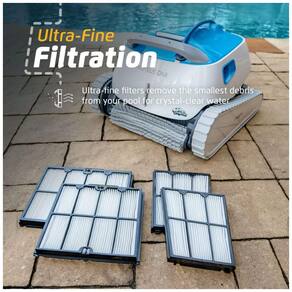O aspirador robótico de piscina Dolphin Proteus DX4 é a solução ideal para manter sua piscina sempre limpa. Com filtros ultrafinos, ele captura os menores detritos, resultando em água cristalina. O design de carga superior torna o processo de limpeza e remoção de detritos simples e conveniente. O limpador de piscina Dolphin possui recursos poderosos de escalada em paredes para esfregar o chão, as paredes e a linha de água da sua piscina, independentemente do formato ou tipo de superfície da piscina. Com a tecnologia Dolphins PowerStream, a superfície da sua piscina fica incrivelmente limpa, pois a água é expelida em múltiplas direções, criando uma aderência constante. O Dolphin Legacy tem mais de 40 anos de limpeza sem esforço com desempenho, durabilidade e economia de custos incomparáveis. Aproveite sua piscina sem complicações