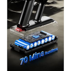 -?70 minutos de execução e carregamento na parede?Diga adeus ao incômodo de recarregar com frequência! Nosso aspirador V10 Ultra tem uma bateria embutida de alta capacidade de 8x2500mAh que fornece até 70 minutos de operação contínua (modo mínimo) e pode limpar até 300 metros quadrados de espaço com uma única carga. O suporte de parede recarregável permite o carregamento automático, basta pendurar o aspirador sem fio no suporte de montagem na parede sem conectar ou desconectar.