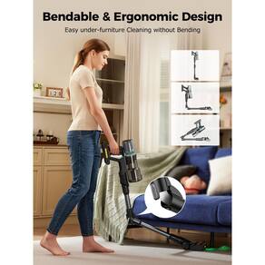 - ?Design dobrável e ergonômico?O aspirador de pó sem fio é ergonomicamente projetado para dobrar 180°, facilitando a limpeza de cantos apertados sob mesas e móveis sem dobrar