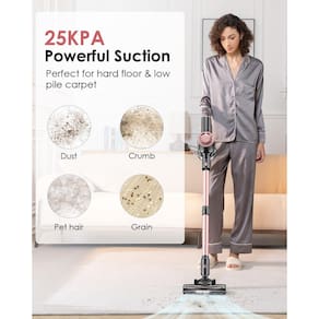 - ?Sucção potente e 2 modos de sucção-?O aspirador de pó sem fio equipado com um motor atualizado pode fornecer sucção super forte para captar poeira, migalhas, comida de cachorro, areia de gato, pelos de animais de estimação e mais facilmente. O aspirador de pó com 2 modos de sucção (modo padrão e modo máximo) pode fazer você selecionar livremente o modo de sucção apropriado com base nas tarefas de limpeza para economizar energia. Um botão para alternar o modo de sucção é muito fácil e conveniente.