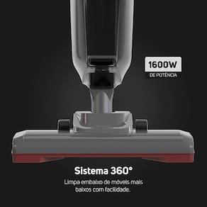 Ele pode ser utilizado no modo vertical, portátil ou com bico escova para estofados e tapetes. Um de seus grandes diferenciais é a oscilação 360°, que facilita a navegação em cantos e locais de difícil acesso.