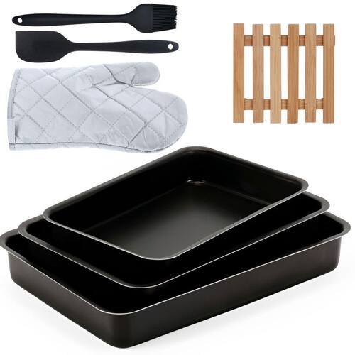 01 Assadeira N1 01 Assadeira N2 01 Assadeira N3 01 Luva Térmica de Cozinha 01 Pincel Culinário de Silicone 01 Descanso de Panela 01 Espátula de Silicone