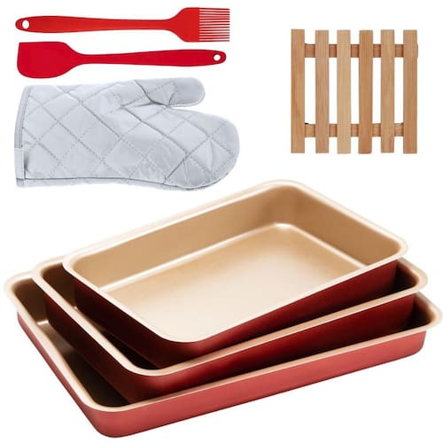01 Assadeira N1 01 Assadeira N2 01 Assadeira N3 01 Luva Térmica de Cozinha 01 Pincel Culinário de Silicone 01 Descanso de Panela 01 Espátula de Silicone
