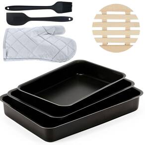 01 Assadeira N1 01 Assadeira N2 01 Assadeira N3 01 Luva Térmica de Cozinha 01 Pincel Culinário de Silicone 01 Descanso de Panela 01 Espátula de Silicone