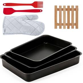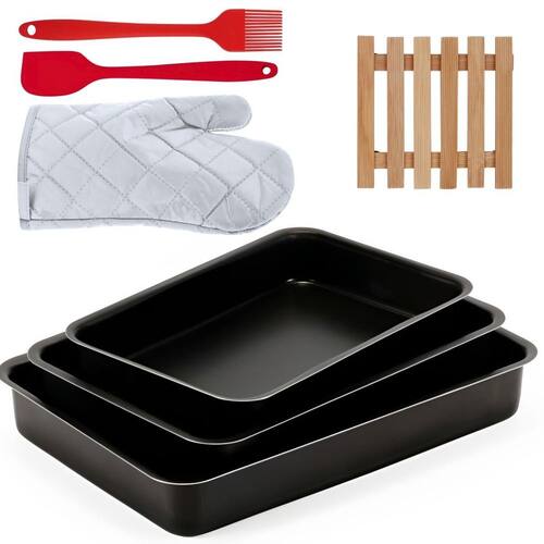 01 Assadeira N1 01 Assadeira N2 01 Assadeira N3 01 Luva Térmica de Cozinha 01 Pincel Culinário de Silicone 01 Descanso de Panela 01 Espátula de Silicone