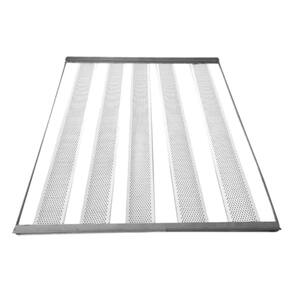 Características Técnicas: Esteiras de tiras de alumínio perfurado Material leve e de excelente qualidade Alta resistência à corrosão e infinitamente reciclável Específica para pães de sal Estrutura do arco em aço carbono (ferro) 5 tiras de 7cm em alumínio Sem engate