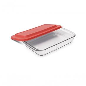Assadeira De Vidro Com Tampa Cheff 2,2l Retangular Para Pratos Quentes E Frios, Vermelha Brinox Vermelho