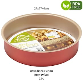 - Fundo Removível: Proporciona facilidade na hora de desenformar, mantendo a integridade das receitas.