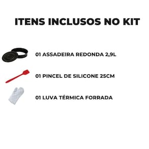01 Assadeira Com Fundo Removível 2,9L 01 Pincel Culinário de Silicone 01 Luva Térmica de Cozinha