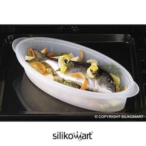 Sua forma oval é ideal para assar peixes pequenos e grandes.