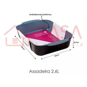 1 Assadeira Preta Antiaderente Retangular 25x20cm.
