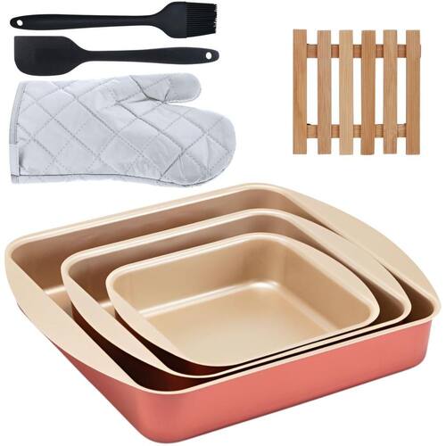 01 Assadeira N1 01 Assadeira N2 01 Assadeira N3 01 Luva Térmica de Cozinha 01 Pincel Culinário de Silicone 01 Descanso de Panela 01 Espátula de Silicone