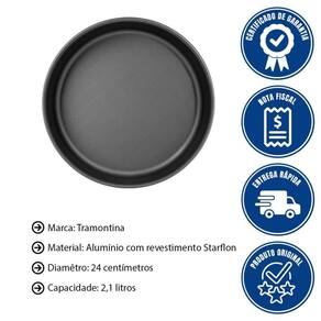 - Para preparar diferentes receitas, a assadeira redonda Tramontina em alumínio com revestimento interno e externo antiaderente Starflon Max grafite 24 centímetros de diâmetro 2,1 L é a melhor escolha!