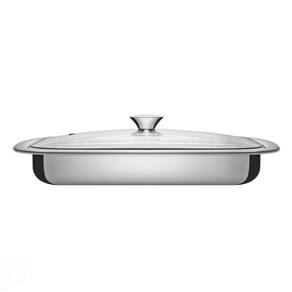 Tenha produtos que aliam praticidade e bom gosto na sua cozinha. A Assadeira Tramontina Cosmos Retangular em Aço Inox com Tampa de Vidro 39 cm é um utensílio com design moderno que proporciona requinte ao ser posta à mesa. Ela ainda apresenta a alta durabilidade e resistência do aço inox e tem um elegante acabamento em brilho. Acompanha tampa de vidro transparente que torna a preparação dos pratos mais prática, permitindo visualizar os alimentos. É um produto perfeito para assar e servir suas melhores receitas. Peças feitas em aço inox, mantêm suas características originais, preservando a beleza, a higiene e a durabilidade do material. Acabamento em brilho. Design moderno proporciona requinte ao compor a mesa. Ideal para assar e servir. Podem ser lavadas diariamente na máquina de lavar louças. Com tampa de vidro transparente que permite a visualização dos alimentos. Características Gerais EAN13 7891116056219 DUN14 17891116056216 NCM 7323.93.00 Peso Líquido 1,3350 kg. Peso Bruto 1,5050 kg. Metragem 0,006997 m³. Dimensões Embalagem (Compr. X Larg. X Alt.) 392x 255x 70 mm. Dimensões Produto (Compr. X Larg. X Alt.) 390x 255x 109 mm. Capacidade 3,20 l. Espessura 0,6 mm. Observações Use apenas sabão ou detergente e uma esponja macia. Outros tipos de produto como palha de aço, poderão riscar ou prejudicar o brilho das peças. Enxágue cada item a fim de remover totalmente os resíduos dos produtos de limpeza, que, por serem abrasivos, podem danificar o inox. Sempre que possível, use água quente, pois renova o brilho das peças. Após a lavagem, enxugue imediatamente as peças, caso contrário, as substâncias químicas da água (cloro) poderão causar manchas. Evite atrito entre as peças durante o processo de lavagem e no armazenamento, para mantê-las sem riscos. A assadeira em aço inox com tampa de vidro pode ir ao forno, podendo haver mudança na coloração. Não guarde as peças em locais úmidos. A umidade também provoca manchas.