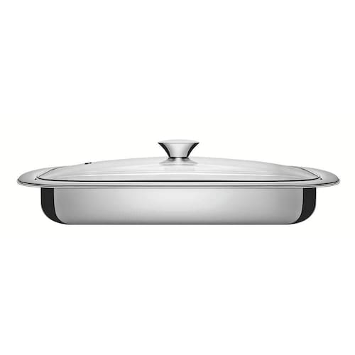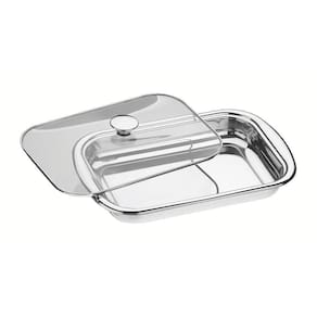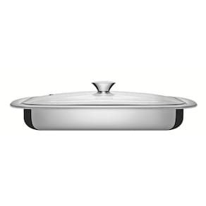 INFORMAÇÕES DA ASSADEIRA COSMOS RETANGULAR EM AÇO INOX COM TAMPA DE VIDRO 43 CM 4 LITROS - Peças feitas em aço inox, mantêm suas características autênticos, preservando a beleza, a higiene e a durabilidade do material. - Acabamento em brilho. - Design moderno proporciona requinte ao compor a mesa. - Ideal para assar e servir. - Podem ser lavadas diariamente na máquina de lavar louças. - Com tampa de vidro transparente que permite a visualização dos alimentos.
