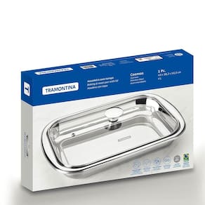 DESCRIÇÃO DA ASSADEIRA COSMOS RETANGULAR EM AÇO INOX COM TAMPA DE VIDRO 43 CM 4 LITROS - Impressione amigos e familiares com a Assadeira Tramontina Cosmos Retangular em Aço Inox com Tampa de Vidro 43 cm. - Perfeita para assar e servir, encaixa-se em diferentes exigências que você encontrar na cozinha. - Possui a alta durabilidade do aço inox e encanta com seu elegante acabamento em brilho, sendo uma ótima opção para ser servida à mesa. - Acompanha tampa de vidro transparente que proporciona um preparo mais funcional, pois você consegue visualizar os alimentos.