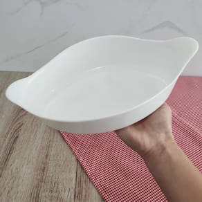 Assadeira Travessa Grande de Vidro Temperado 1,4L Opaline Marinex Branca #Travessa Marinex branca #Linha Opaline Marinex #Design e praticidade Garantia: 90 dias / Peso: 718g / Cor: Branco / Ref: 7891155072706 Dimensões externa superior: 30cm (C) x 20cm (L) x 7cm (A) Dimensões interna superior: 26cm (C) X 18cm (L) Dimensões externa inferior: 22cm (C) x 16cm (L) x 7cm (A) Dimensões interna inferior: 20cm (C) x 15cm (L) x 6cm (A) Dimensão alça: 6cm (C) X 2cm (L) Espessura: 0,5cm Formato: Oval. Capacidade: 1,4 litros Conteúdo: 01 Assadeira Grande. Limpeza e Cuidados: - Lavar com água e sabão neutro utilizando esponja macia, seguido de pano seco; - Não utilizar produtos químicos ou abrasivos na limpeza; - Vai a lava-louças. Detalhes do Produto: - Não utilizar diretamente sobre a chama, aquecedor elétrico, chapa ou grelha; - Pode ser levado ao forno com temperatura máxima de +300°C; - Pode ser levado ao freezer com temperatura mínima de -20°C; - Pode ser levado ao micro-ondas por até 10 minutos; - Suporta choque térmico de até 180°C; - Produto não acompanha tampa; - Produto livre de BPA. Material: - Vidro Temperado: Alta resistência ao calor e a impactos. Não pega cheiro e não mancha. Atóxico, pode entrar em contato com alimentos. A travessa Marinex Opaline é produzida em vidro temperado branco, e serve desde o preparo inicial até o momento de servir. A travessa oval branca possui capacidade para 1,4 litros sendo ideal para servir suas receitas favoritas para sua família e amigos. A travessa branca Marinex dispõe de alças ergonômicas, oferecendo praticidade no momento de servir. Esta travessa branca grande é ideal para uso em forno convencional, micro-ondas, freezer, geladeira e lava-louça.