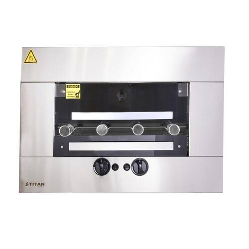Assador A Gás De Embutir 4 Espetos Titan Gás Natural 127V Churrasqueira a gás Titan para EMBUTIR em nicho de alvenaria, seu espaço gourmet mais moderno e prático. É ideal para assar Carnes, Legumes, Pizzas e garantir um saboroso Churrasco. Possui sistema rotativo, iluminação interna e queimadores infravermelhos. Churrasqueira silenciosa e não produz fumaça.