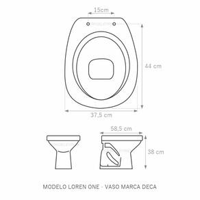 Assento Sanitário Almofadado (tampa de vaso) fabricado em polipropileno e polietileno especial. Resistente, durável, com excelente acabamento e design sofisticado. Assento macio, arco almofadado.Devido a sua composição este produto é totalmente impermeável e de fácil limpeza e higienização. Compatível com vasos sanitários de descarga convencional e também vasos com caixa acoplada. Acabamento brilhante no tampo e no assento. Fixação regulável para o perfeito encaixe na louça sanitária. Fácil limpeza, é higiênico e não acumula sujeira. O assento é acompanhado por parafusos para instalação e acabamentos. Embalagem dupla reforçada garante o recebimento do produto totalmente protegido. Especificações: - Dimensões da caixa: largura: 50,00cm. Altura: 4,00cm comprimento: 40,00cm - Acabamento: brilhante - Uso: este assento é adequado para uso na louça Lorenzetti modelo Loren One - Garantia: 3 meses - Itens inclusos: Tampa e assento, parafusos e embalagem duplamente reforçada. Instalação: posicione o produto, devidamente centralizado, em cima do vaso sanitário. Encaixe os parafusos e encaixe as porcas. Aperte até que o assento esteja firme no vaso. Manutenção: recomendamos a limpeza periódica com pano levemente umedecido com sabão neutro. Não usar esponjas abrasivas ou palha de aço nem qualquer tipo de produto químico.