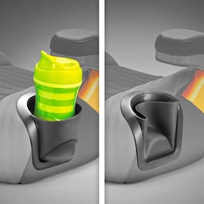 O assento possui contornos ErgoBoost e estofamento de espuma dupla para fornecer suporte adequado em todos os lugares certos. Guias de segurança integradas e um clipe de cinto de ombro ajudam a posicionar o cinto de segurança do veículo corretamente. Além disso, possui dois porta-copos flexíveis que economizam espaço e são fáceis de remover para limpeza, inclusive, podem ir na máquina de lavar louça.
