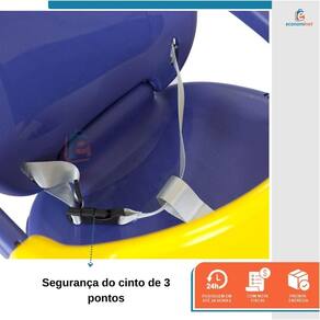 O Assento Elevatório proporciona uma refeição mais segura e prática para a criança em família. Com 3 posições de altura, pode ser instalada sobre a maioria das cadeiras de adulto. Possui cinto de segurança de 3 pontos para maior segurança. Pode ser Utilizado independente da cadeira de adulto, sobre o piso. Seu fechamento ultracompacto, permite levar a cadeira para onde você quiser. - Bandeja removível; - Sistema de fixação para cadeiras de adulto; - Ajuste de altura em 3 posições; - Suporte para copo; - Pés antiderrapantes; - Cinto de segurança 3 pontos; - Correia adapta-se a qualquer assento. CARACTERÍSTICAS TÉCNICAS: Material: PP Medidas: 76cm x 56cm x 43cm Idade recomendada: 6 a 36 meses Peso suportado: Até 15kg Peso: 1,8kg Marca: Baby Style Ref.: 11511 Marca: Não Informado
