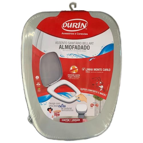 Assento Durin Bellart/Deca Monte Carlo Cinza Claro 00735 - Características Gerais do Produto: Assento fabricado em EVA proporcionando conforto e maciez e tampa em plástico pp de grande resistencia e qualidade, o assento possui proteção contra fungos e bacterias e com um design que proporciona uma bela aparencia e muito conforto. Compátivel com os modelos Deca Monte Carlo Acompanha o produto: 1 Assento Durin BellartDeca Monte Carlo 00733 2parafusos Para Fixção : 1 ano de direto de fábrica Marca: Não Informado