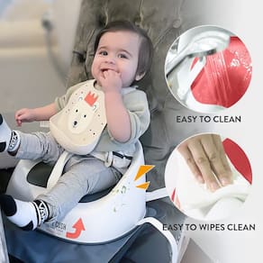 Prince Lionheart Assento elevatório Squish, fúcsia, cinto de 3 pontos e sistema de alça dupla, fácil de limpar e leve - O único assento elevatório com uma área de assento suspensa, por isso é super confortável para crianças a partir de 18 meses a 5 anos ou 27 kg (pode parecer borracha/espuma em cima de plástico rígido, mas não é) - Cinto de três pontos e sistema de alça dupla para a cadeira - uma maneira elegante de dizer que este é um assento seguro. - Fácil de limpar, impermeável e leve para facilitar o transporte.