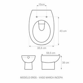 Assento Sanitário (tampa de vaso) fabricado em madeira MDF com pintura laqueada, com proteção raios UV, que garante excelente acabamento e durabilidade. Compatível com vasos (bacias/louças) sanitários com ou sem caixa acoplada. Tem calços de PVC instalados na tampa e no assento para proporcionar estabilidade ao uso, pois distribui o peso uniformemente sobre a louça sanitária. Montagem simples e fácil. Possui ferragem em alumínio anodizado que não enferruja/oxida e oferece muita resistência. O assento é acompanhado por parafusos para instalação. Embalagem dupla reforçada garante o recebimento do produto totalmente protegido. Especificações: - Dimensões da caixa: largura: 51,50cm. Altura: 4,00cm comprimento: 38,00cm - Peso do produto: 1,98kg - Acabamento: brilhante - Uso: este assento é adequado para uso na louça Incepa modelo Eros - Garantia: 3 meses - Itens inclusos: Tampa e assento com calços de PVC, ferragem inoxidável, embalagem duplamente reforçada. Contém todos os parafusos e encaixes para instalação, sendo necessária somente uma chave de fenda para instalar o produto na louça sanitária. Instalação:posicione o produto, devidamente centralizado, em cima do vaso sanitário. Sem desmontar a ferragem, insira as buchas de borracha dentro dos furos da bacia sanitária. Utilizando uma chave de fenda, aperte o parafuso no sentido horário até que o assento esteja firme no vaso. Manutenção: recomendamos a limpeza periódica com pano levemente umedecido com sabão neutro. Não usar esponjas abrasivas ou palha de aço nem qualquer tipo de produto químico. Marca: LOJAROCCA