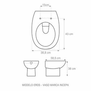 Assento Sanitário tampa de vaso fabricado em madeira MDF com pintura laqueada, com proteção raios UV, que garante excelente acabamento e durabilidade. Compatível com vasos bacias/louças sanitários com ou sem caixa acoplada. Tem calços de PVC instalados na tampa e no assento para proporcionar estabilidade ao uso, pois distribui o peso uniformemente sobre a louça sanitária. Montagem simples e fácil. Possui ferragem em alumínio anodizado que não enferruja/oxida e oferece muita resistência. O assento é acompanhado por parafusos para instalação. Embalagem dupla reforçada garante o recebimento do produto totalmente protegido. Especificações: - Dimensões da caixa: largura: 51,50cm. Altura: 4,00cm comprimento: 38,00cm - Peso do produto: 1,98kg - Acabamento: brilhante - Uso: este assento é adequado para uso na louça Incepa modelo Eros - Garantia: 3 meses - Itens inclusos: Tampa e assento com calços de PVC, ferragem inoxidável, embalagem duplamente reforçada. Contém todos os parafusos e encaixes para instalação, sendo necessária somente uma chave de fenda para instalar o produto na louça sanitária. Instalação:posicione o produto, devidamente centralizado, em cima do vaso sanitário. Sem desmontar a ferragem, insira as buchas de borracha dentro dos furos da bacia sanitária. Utilizando uma chave de fenda, aperte o parafuso no sentido horário até que o assento esteja firme no vaso. Manutenção: recomendamos a limpeza periódica com pano levemente umedecido com sabão neutro. Não usar esponjas abrasivas ou palha de aço nem qualquer tipo de produto químico. Marca: Lojarocca
