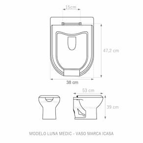 Assento Sanitário tampa para vaso com abertura frontal, louça adaptada para banheiros para Portadores de Necessidades Especiais fabricado em madeira MDF com pintura laqueada, com proteção raios UV, que garante excelente acabamento e durabilidade. Compatível com vasos bacias/louças sanitários com ou sem caixa acoplada. Tem calços de PVC instalados na tampa e no assento para proporcionar estabilidade ao uso, pois distribui o peso uniformemente sobre a louça sanitária. Montagem simples e fácil. Possui ferragem em alumínio anodizado que não enferruja/oxida e oferece muita resistência. O assento é acompanhado por parafusos para instalação. Embalagem dupla reforçada garante o recebimento do produto totalmente protegido. Especificações: - Dimensões da caixa: largura: 51,50cm. Altura: 4,00cm comprimento: 38,00cm - Peso do produto: 1,98kg - Acabamento: brilhante - Uso: este assento é adequado para uso na louça Icasa modelo Luna Medic Luna com abertura frontal, louça adaptada para banheiros para Portadores de Necessidades Especiais - Garantia: 3 meses - Itens inclusos: Tampa e assento em MDF com calços de PVC, ferragem inoxidável, embalagem duplamente reforçada. Contém todos os parafusos e encaixes para instalação, sendo necessária somente uma chave de fenda para instalar o produto na louça sanitária. Instalação: posicione o produto, devidamente centralizado, em cima do vaso sanitário. Sem desmontar a ferragem, insira as buchas de borracha dentro dos furos da bacia sanitária. Encaixe os parafusos e posicione as porcas. Utilizando uma chave de fenda, aperte o parafuso no sentido horário até que o assento esteja firme e fixo no vaso. Manutenção: recomendamos a limpeza periódica com pano levemente umedecido com sabão neutro. Não usar esponjas abrasivas ou palha de aço nem qualquer tipo de produto químico. Marca: Lojarocca