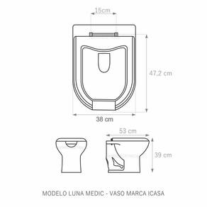 Assento Sanitário tampa para vaso com abertura frontal, louça adaptada para banheiros para Portadores de Necessidades Especiais fabricado em madeira MDF com pintura laqueada, com proteção raios UV, que garante excelente acabamento e durabilidade. Compatível com vasos bacias/louças sanitários com ou sem caixa acoplada. Tem calços de PVC instalados na tampa e no assento para proporcionar estabilidade ao uso, pois distribui o peso uniformemente sobre a louça sanitária. Montagem simples e fácil. Possui ferragem em alumínio anodizado que não enferruja/oxida e oferece muita resistência. O assento é acompanhado por parafusos para instalação. Embalagem dupla reforçada garante o recebimento do produto totalmente protegido. Especificações: - Dimensões da caixa: largura: 51,50cm. Altura: 4,00cm comprimento: 38,00cm - Peso do produto: 1,98kg - Acabamento: brilhante - Uso: este assento é adequado para uso na louça Icasa modelo Luna Medic Luna com abertura frontal, louça adaptada para banheiros para Portadores de Necessidades Especiais - Garantia: 3 meses - Itens inclusos: Tampa e assento em MDF com calços de PVC, ferragem inoxidável, embalagem duplamente reforçada. Contém todos os parafusos e encaixes para instalação, sendo necessária somente uma chave de fenda para instalar o produto na louça sanitária. Instalação: posicione o produto, devidamente centralizado, em cima do vaso sanitário. Sem desmontar a ferragem, insira as buchas de borracha dentro dos furos da bacia sanitária. Encaixe os parafusos e posicione as porcas. Utilizando uma chave de fenda, aperte o parafuso no sentido horário até que o assento esteja firme e fixo no vaso. Manutenção: recomendamos a limpeza periódica com pano levemente umedecido com sabão neutro. Não usar esponjas abrasivas ou palha de aço nem qualquer tipo de produto químico. Marca: Lojarocca