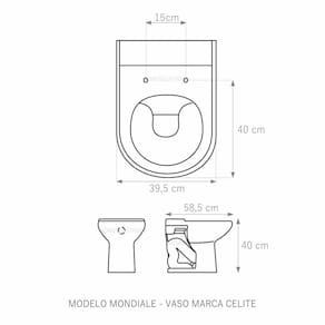 Assento Sanitário tampa de vaso fabricado em madeira MDF com pintura laqueada, com proteção raios UV, que garante excelente acabamento e durabilidade. Compatível com vasos bacias/louças sanitários com ou sem caixa acoplada. Tem calços de PVC instalados na tampa e no assento para proporcionar estabilidade ao uso, pois distribui o peso uniformemente sobre a louça sanitária. Montagem simples e fácil. Possui ferragem em alumínio anodizado que não enferruja/oxida e oferece muita resistência. O assento é acompanhado por parafusos para instalação. Embalagem dupla reforçada garante o recebimento do produto totalmente protegido. Especificações: - Dimensões da caixa: largura: 51,50cm. Altura: 4,00cm comprimento: 38,00cm - Peso do produto: 1,98kg - Acabamento: brilhante - Uso: este assento é adequado para uso na louça Celite modelo Mondiale - Garantia: 3 meses - Itens inclusos: Tampa e assento em MDF com calços de PVC, ferragem inoxidável, embalagem duplamente reforçada. Contém todos os parafusos e encaixes para instalação, sendo necessária somente uma chave de fenda para instalar o produto na louça sanitária. Instalação: posicione o produto, devidamente centralizado, em cima do vaso sanitário. Sem desmontar a ferragem, insira as buchas de borracha dentro dos furos da bacia sanitária. Encaixe os parafusos e posicione as porcas. Utilizando uma chave de fenda, aperte o parafuso no sentido horário até que o assento esteja firme e fixo no vaso. Manutenção: recomendamos a limpeza periódica com pano levemente umedecido com sabão neutro. Não usar esponjas abrasivas ou palha de aço nem qualquer tipo de produto químico.
