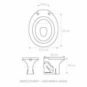 Assento Sanitário (tampa de vaso) fabricado em madeira MDF com pintura laqueada, com proteção raios UV, que garante excelente acabamento e durabilidade. Compatível com vasos (bacias/louças) sanitários com ou sem caixa acoplada. Tem calços de PVC instalados na tampa e no assento para proporcionar estabilidade ao uso, pois distribui o peso uniformemente sobre a louça sanitária. Montagem simples e fácil. Possui ferragem em alumínio anodizado que não enferruja/oxida e oferece muita resistência. O assento é acompanhado por parafusos para instalação. Embalagem dupla reforçada garante o recebimento do produto totalmente protegido. Especificações: - Dimensões da caixa: largura: 51,50cm. Altura: 4,00cm comprimento: 38,00cm - Peso do produto: 1,98kg - Acabamento: brilhante - Uso: este assento é adequado para uso na louça Logasa de modelo Parati - Garantia: 3 meses - Itens inclusos: Tampa e assento com calços de PVC, ferragem inoxidável, embalagem duplamente reforçada. Contém todos os parafusos e encaixes para instalação, sendo necessária somente uma chave de fenda para instalar o produto na louça sanitária. Instalação: posicione o produto, devidamente centralizado, em cima do vaso sanitário. Sem desmontar a ferragem, insira as buchas de borracha dentro dos furos da bacia sanitária. Utilizando uma chave de fenda, aperte o parafuso no sentido horário até que o assento esteja firme no vaso. Manutenção: recomendamos a limpeza periódica com pano levemente umedecido com sabão neutro. Não usar esponjas abrasivas ou palha de aço nem qualquer tipo de produto químico.