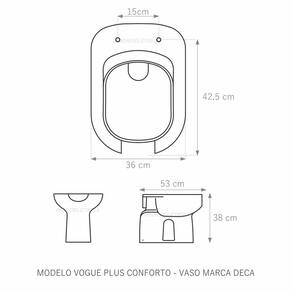 Assento Sanitário (tampa para vaso com abertura frontal, louça adaptada para banheiros para Portadores de Necessidades Especiais) fabricado em madeira MDF com pintura laqueada, com proteção raios UV, que garante excelente acabamento e durabilidade. Compatível com vasos (bacias/louças) sanitários com ou sem caixa acoplada. Tem calços de PVC instalados na tampa e no assento para proporcionar estabilidade ao uso, pois distribui o peso uniformemente sobre a louça sanitária. Montagem simples e fácil. Possui ferragem em alumínio anodizado que não enferruja/oxida e oferece muita resistência. O assento é acompanhado por parafusos para instalação. Embalagem dupla reforçada garante o recebimento do produto totalmente protegido. Especificações: - Dimensões da caixa: largura: 51,50cm. Altura: 4,00cm comprimento: 38,00cm - Peso do produto: 1,98kg - Acabamento: brilhante - Uso: este assento é adequado para uso na louça Deca modelo Vogue Plus Conforto (Vogue Plus com abertura frontal, louça adaptada para banheiros para Portadores de Necessidades Especiais) - Garantia: 3 meses - Itens inclusos: Tampa e assento em MDF com calços de PVC, ferragem inoxidável, embalagem duplamente reforçada. Contém todos os parafusos e encaixes para instalação, sendo necessária somente uma chave de fenda para instalar o produto na louça sanitária. Instalação: posicione o produto, devidamente centralizado, em cima do vaso sanitário. Sem desmontar a ferragem, insira as buchas de borracha dentro dos furos da bacia sanitária. Encaixe os parafusos e posicione as porcas. Utilizando uma chave de fenda, aperte o parafuso no sentido horário até que o assento esteja firme e fixo no vaso. Manutenção: recomendamos a limpeza periódica com pano levemente umedecido com sabão neutro. Não usar esponjas abrasivas ou palha de aço nem qualquer tipo de produto químico. Marca: LOJAROCCA