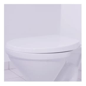 Assento universal para todas as louças ovais, em polipropileno, higiênico e de fácil limpeza, confortável, resistente, com tampa envolvente e superfície brilhante. Acabamento esmaltado.