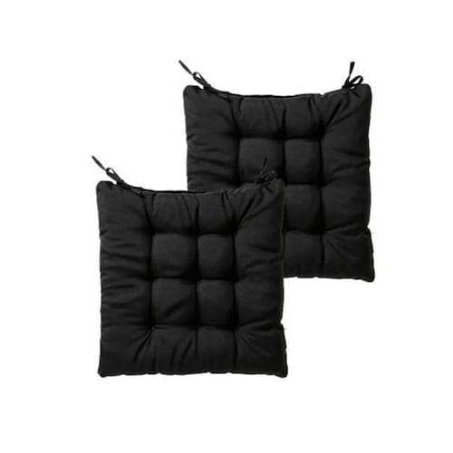 2 almofadas assento para cadeira futton preto 40x40. Tamanho: 40x40 Cor: amarela Tecido: 100% Poliéster Enchimento: Poliéster Modelo: Almofada para Cadeira Altura: 5 cm Peso do produto: 700 gramas podendo variar A almofada tem duas cordas para amarrar