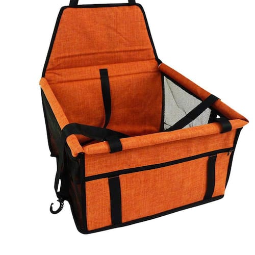 Assento Pet Para Carro Cães E Gatos Cadeirinha Laranja Como utilizar - apoie a bolsa no assento do banco do carro. - passe as alças de apoio por trás do encosto de cabeça do banco do carro e ajuste-as até ficarem esticadas. - coloque o cinto de segurança por dentro dos passadores. - coloque o pet dentro da bolsa, prendendo a guia fixa interna na coleira do animal. Especificações aberta - comprimento 40 cm. - largura 40 cm. - altura 24 cm. Características - passadores de cinto de segurança. - guia fixa interna para coleira - prática.