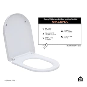 O Assento Plástico com Soft Close para Vaso Sanitário Galena da Pingoo.casa - Branco é a escolha perfeita para quem busca sofisticação, durabilidade e conforto no banheiro.