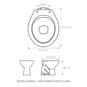 Assento Sanitário tampa de vaso fabricado em madeira MDF revestido com laminado poliéster, com excelente acabamento fosco e texturizado o que garante uma durabilidade maior. A laminação de poliéster torna este produto impermeável e de fácil limpeza e higienização. Compatível com vasos bacias/louças sanitários com ou sem caixa acoplada. Os calços de PVC são instalados na tampa e no assento antes da laminação para evitar a entrada da água ou que eventualmente se soltem. Montagem simples e fácil. Possui ferragem em alumínio anodizado que não enferruja/oxida e oferece muita resistência. O assento é acompanhado por parafusos para instalação. Embalagem dupla reforçada garante o recebimento do produto totalmente protegido. Especificações: - Dimensões da caixa: largura: 51,50cm. Altura: 4,00cm comprimento: 38,00cm - Peso do produto: 1,98kg - Acabamento: fosco e texturizado - Uso: este assento é adequado para uso na louça Santa Clara modelo Araxá - Garantia: 3 meses - Itens inclusos: Tampa e assento com calços de PVC, ferragem inoxidável, embalagem duplamente reforçada. Contém todos os parafusos e encaixes para instalação, sendo necessária somente uma chave de fenda para instalar o produto na louça sanitária. Instalação: posicione o produto, devidamente centralizado, em cima do vaso sanitário. Sem desmontar a ferragem, insira as buchas de borracha dentro dos furos da bacia sanitária. Utilizando uma chave de fenda, aperte o parafuso no sentido horário até que o assento esteja firme no vaso. Manutenção: recomendamos a limpeza periódica com pano levemente umedecido com sabão neutro. Não usar esponjas abrasivas ou palha de aço nem qualquer tipo de produto químico.