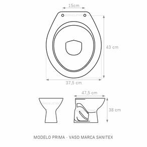Assento Poliéster Laminado Prima Branco Tampa Vaso Sanitex Branco Assento Sanitário tampa de vaso fabricado em madeira MDF revestido com laminado poliéster, com excelente acabamento fosco e texturizado o que garante uma durabilidade maior. A laminação de poliéster torna este produto impermeável e de fácil limpeza e higienização. Compatível com vasos bacias/louças sanitários com ou sem caixa acoplada. Os calços de PVC são instalados na tampa e no assento antes da laminação para evitar a entrada da água ou que eventualmente se soltem. Montagem simples e fácil. Possui ferragem em alumínio anodizado que não enferruja/oxida e oferece muita resistência. O assento é acompanhado por parafusos para instalação. Embalagem dupla reforçada garante o recebimento do produto totalmente protegido. Especificações: - Dimensões da caixa: largura: 51,50cm. Altura: 4,00cm comprimento: 38,00cm - Peso do produto: 1,98kg - Acabamento: fosco e texturizado - Uso: este assento é adequado para uso na louça Sanitex modelo Prima - Garantia: 3 meses - Itens inclusos: Tampa e assento com calços de PVC, ferragem inoxidável, embalagem duplamente reforçada. Contém todos os parafusos e encaixes para instalação, sendo necessária somente uma chave de fenda para instalar o produto na louça sanitária. Instalação: posicione o produto, devidamente centralizado, em cima do vaso sanitário. Sem desmontar a ferragem, insira as buchas de borracha dentro dos furos da bacia sanitária. Utilizando uma chave de fenda, aperte o parafuso no sentido horário até que o assento esteja firme no vaso. Manutenção: recomendamos a limpeza periódica com pano levemente umedecido com sabão neutro. Não usar esponjas abrasivas ou palha de aço nem qualquer tipo de produto químico. Marca: Lojarocca