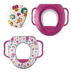 Assento Redutor Sanitário Infantil Alças Adaptador Acolchoado para Vaso Conforto Rosa Yeet