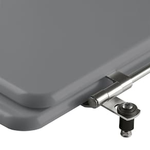 O encaixe do assento sanitário no vaso é feito por uma ferragem metálica que não oxida e não enferruja.